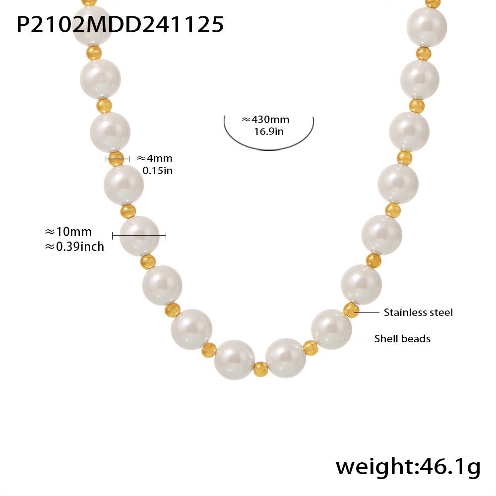 Colors: P2102 – 10mm Gold-Color Imitation Pearl Necklace, P2102 – 10mm Steel-Color Imitation Pearl Necklace, P2102 – 12mm Gold-Color Imitation Pearl Necklace, P2102 – 12mm Steel-Color Imitation Pearl Necklace